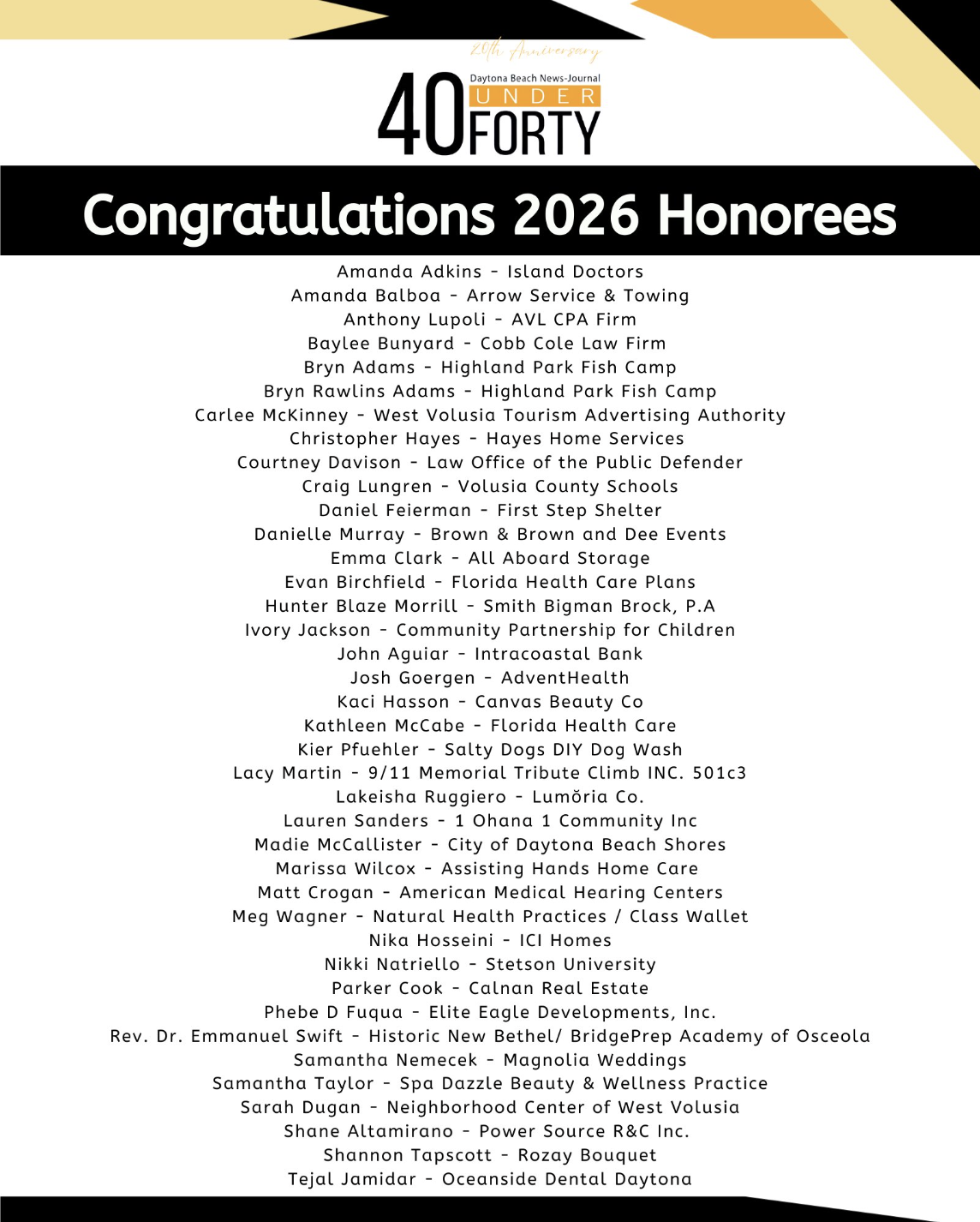 2026 Daytona Beach News-Journal's 40 Under Forty Awards